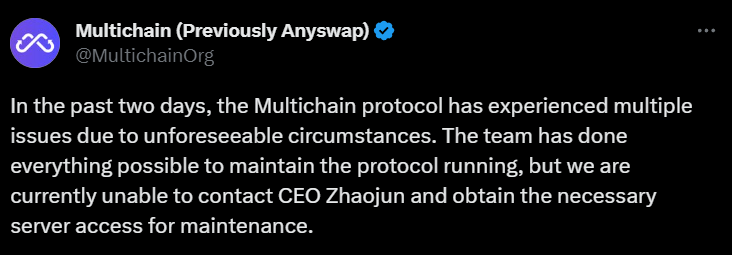В начале июля разработчики Multichain свернули работу проекта, сославшись на подозрительные операции. Позже выяснилось, что неизвестные обчистили проект почти на $250 млн в разных альткоинах. В декабре 2021 года проект привлек $60 млн от биржи криптовалют Binance, а также Sequoia China, IDG Capital, (ныне закрытый скандальный хедж-фонд Three Arrows Capital) и другие. В самой Binance называли себя стратегическими инвесторами Multichain.