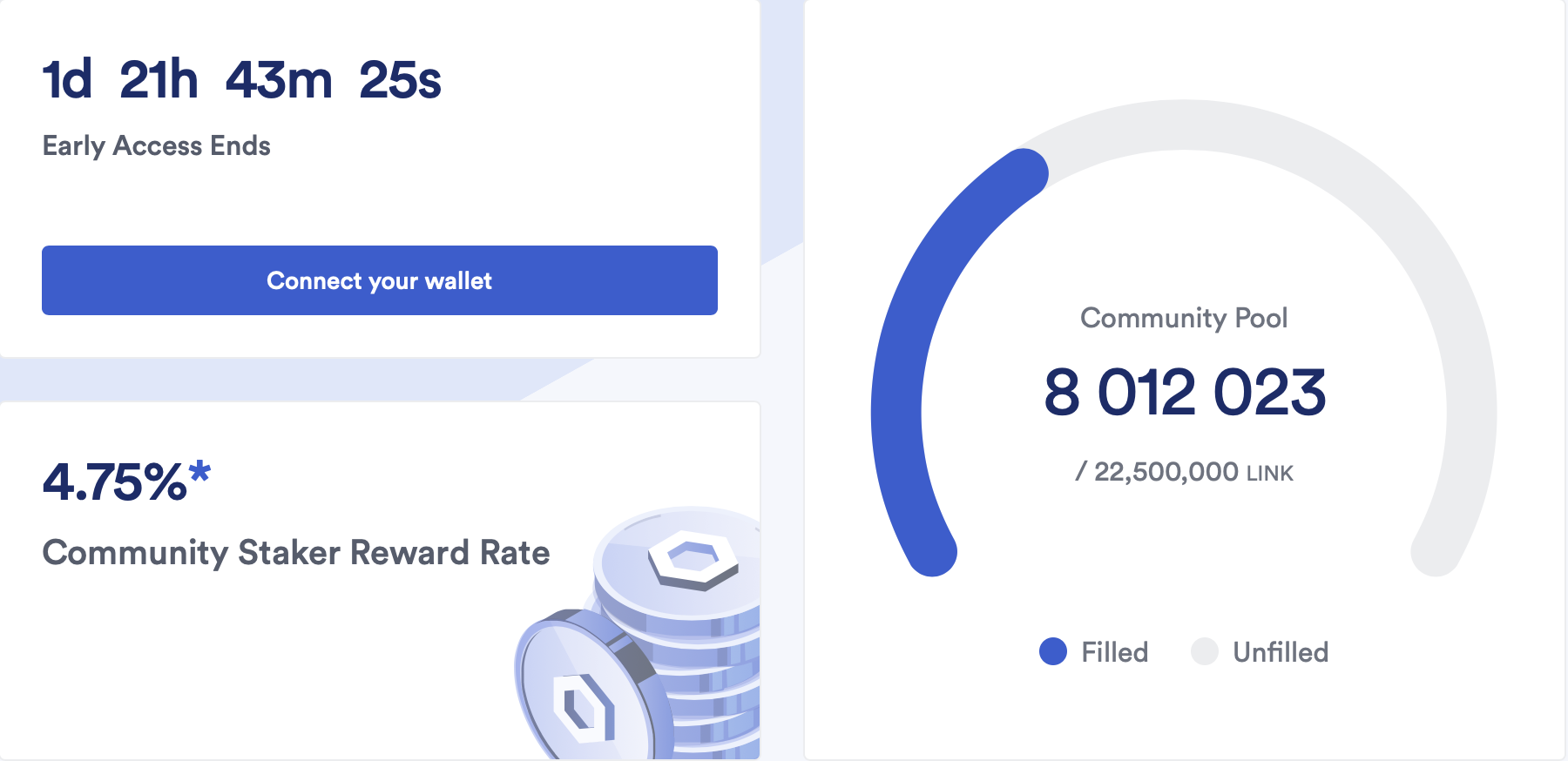 Стейкеры-участники сообщества будут получать фиксированный доход 4,75% в год в LINK. Размер вознаграждения операторам нод будет зависеть от количества токенов, добавленных ими в стейкинг, суммы токенов участников сообщества и общего числа нод, которые присоединились к пулу.