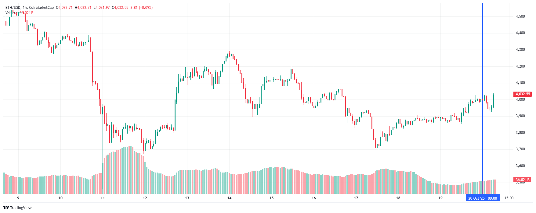 Вторая по капитализации криптовалюта Ethereum также начала день с роста. По состоянию на момент написания обзора, монета торгуется по $4 032 (1 токен в рублях — ₽328 020).