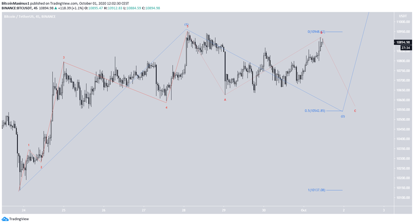 Sponsored SponsoredНе исключено, что биткоин завершил коррекцию 30 сентября, когда коснулся минимума $10 658. При этом текущий подъем выглядит скорее коррективным, нежели импульсивным, а значит, криптовалюта, вероятно, все еще находится на стадии подволны В.