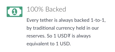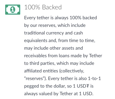 Примечательно, что в марте 2019 года информация на официальном сайте Tether изменилась. Представители проекта заменили объявление на другое. В новой публикации говорится о том, что каждый USDT обеспечен резервами компании. Последние могут включать фиатную валюту, долговые обязательства и другие активы.