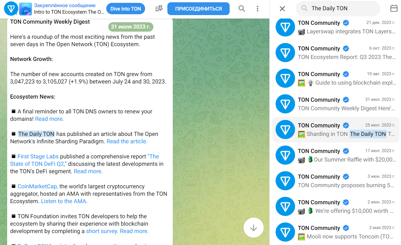 В блоге TON и официальном сообществе проекта в Telegram нет информации о запуске криптовалюты GRAM. При этом упоминания The Daily TON есть в Телеграм-канале TON.