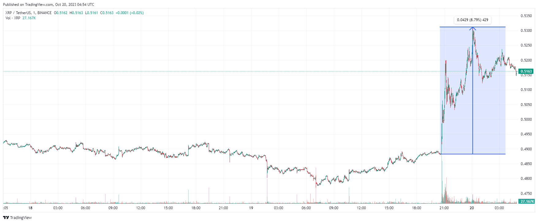 За несколько часов на фоне публикации новости курс нативного токена Ripple — XRP — вырос более чем на 8%, после чего криптовалюта вышла в коррекцию. Максимум монеты за 24 часа, по данным ресурса CoinMarketCap, зафиксирован на уровне $0.5291. По состоянию на момент написания обзора XRP торгуется по $0.5162.