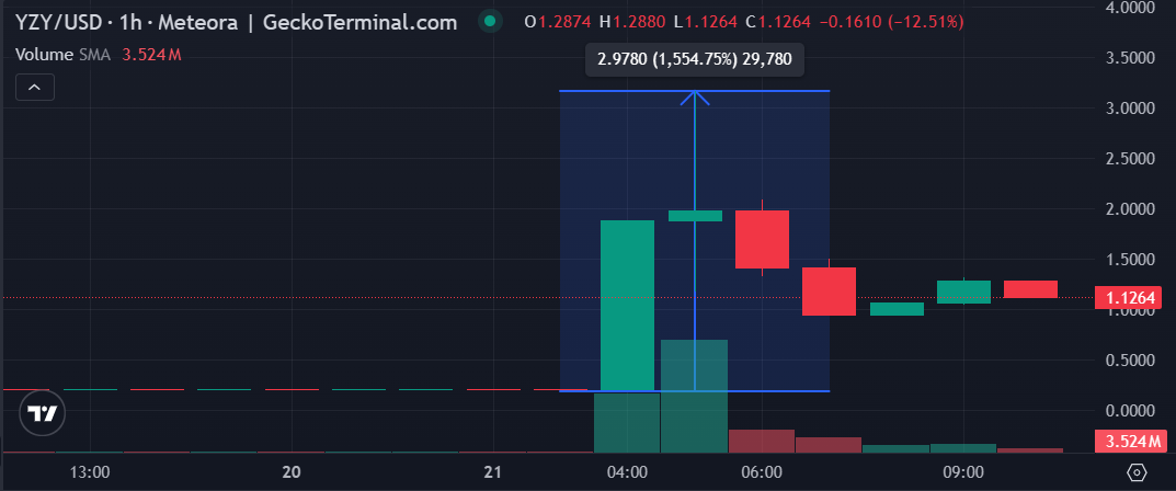 «6MNWV8 потратил 450 611 USDC на покупку 1,29 млн YZY по $0,35 сегодня и продал 1,04 млн YZY за $1,39 млн, оставив 249 907 YZY ($600 тыс.) с прибылью более $1,5 млн», — такой пример инсайдерской торговли приводят аналитики.