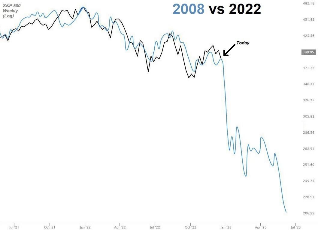 SponsoredФорумчане на Reddit, в свою очередь, обратили внимание, что S&P 500 сейчас движется так же, как во время финансового кризиса 2008 года. Сохранение траектории, как считает автор поста, может вывести S&P 500 к новым локальным минимумам.