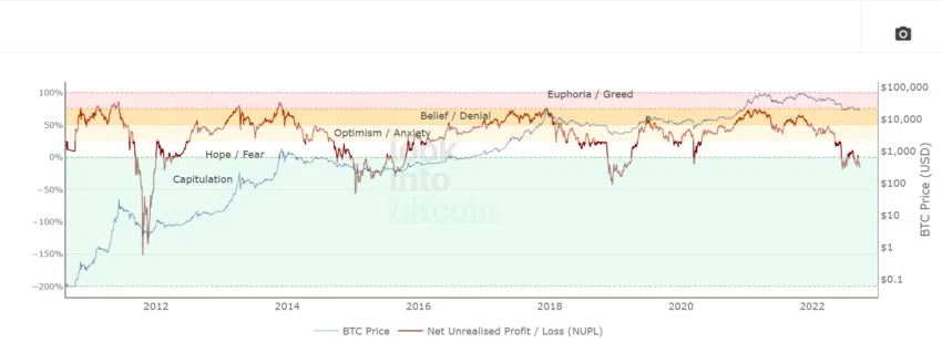 Индикатор чистой нереализованной прибыли/убытка (NUPL) говорит о том, что рынок находится в состоянии капитуляции после затяжного медвежьего рынка.