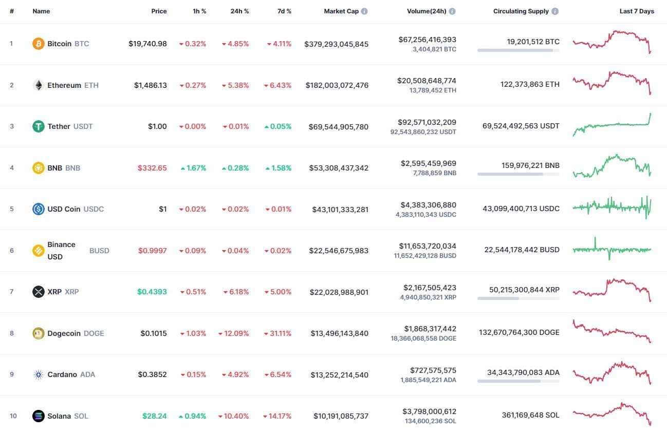 На фоне риска дампа BTC многие криптовалюты продемонстрировали отрицательную динамику.