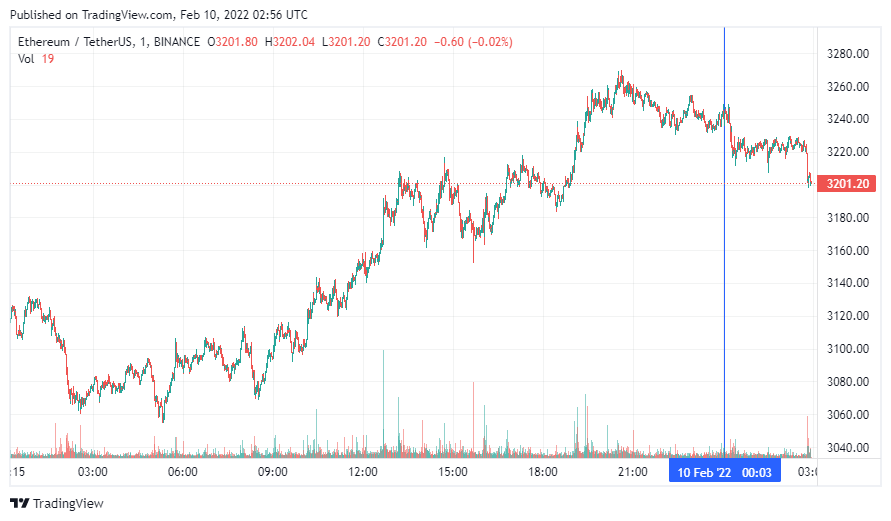Вторая по капитализации криптовалюта Ethereum начала четверг с коррекции. По состоянию на момент написания новости монета торгуется по $3201.