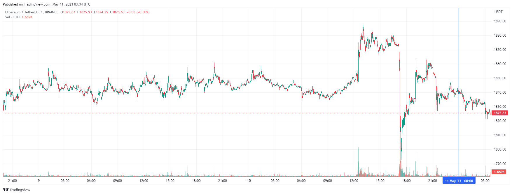 Вторая по капитализации криптовалюта Ethereum также начала день с падения. По состоянию на момент написания обзора, монета торгуется по $1825 (1 токен в рублях — ₽139,208).