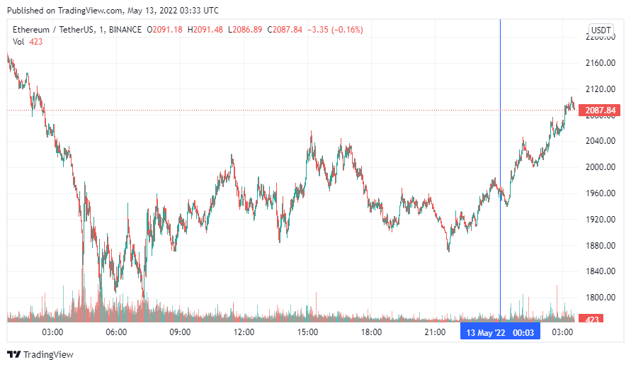 SponsoredВторая по капитализации криптовалюта Ethereum также начала день с роста. По состоянию на момент написания новости, монета торгуется по $2087.