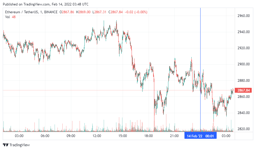 SponsoredВторая по капитализации криптовалюта Ethereum также начала понедельник с падения, которое перешло в коррекцию. По состоянию на момент написания новости, монета торгуется по $2867.