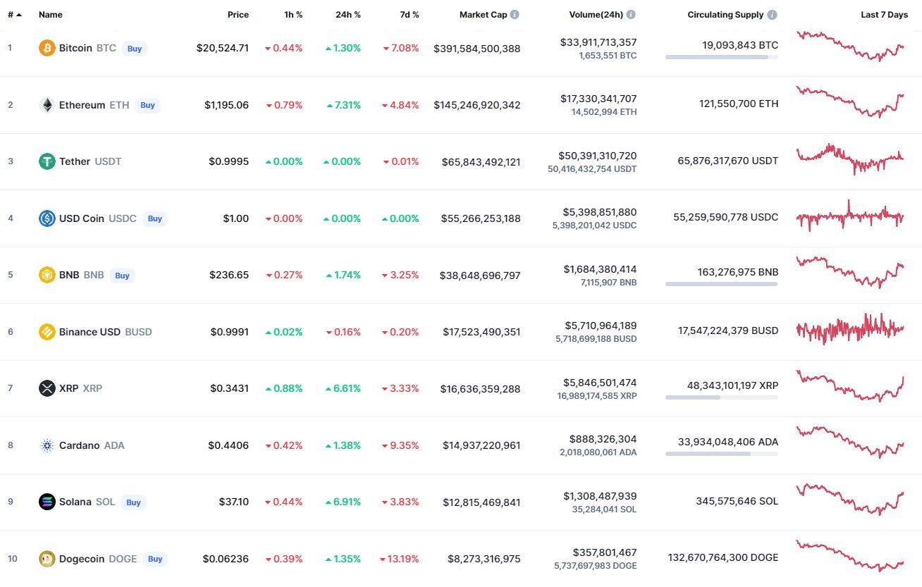 Биткоин (BTC), по данным ресурса CoinMarketCap, начал пятницу со вспышки роста, которая перешла в боковик. По состоянию на 06:42 (МСК), криптовалюта торгуется по $20 538. Минимум стоимости монеты за 24 часа зафиксирован на уровне $19 689, максимум – на высоте $20 789.