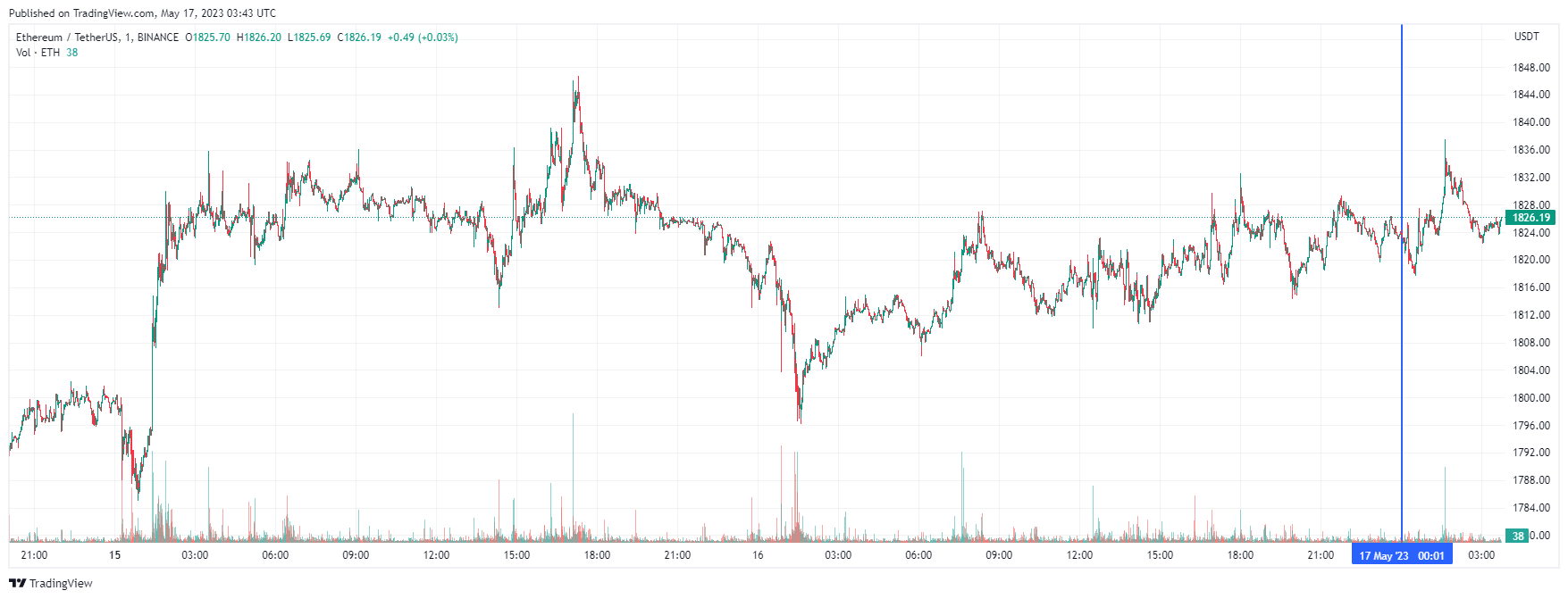 Вторая по капитализации криптовалюта Ethereum также начала день с небольшого роста. По состоянию на момент написания обзора, монета торгуется по $1826 (1 токен в рублях — ₽146 969).