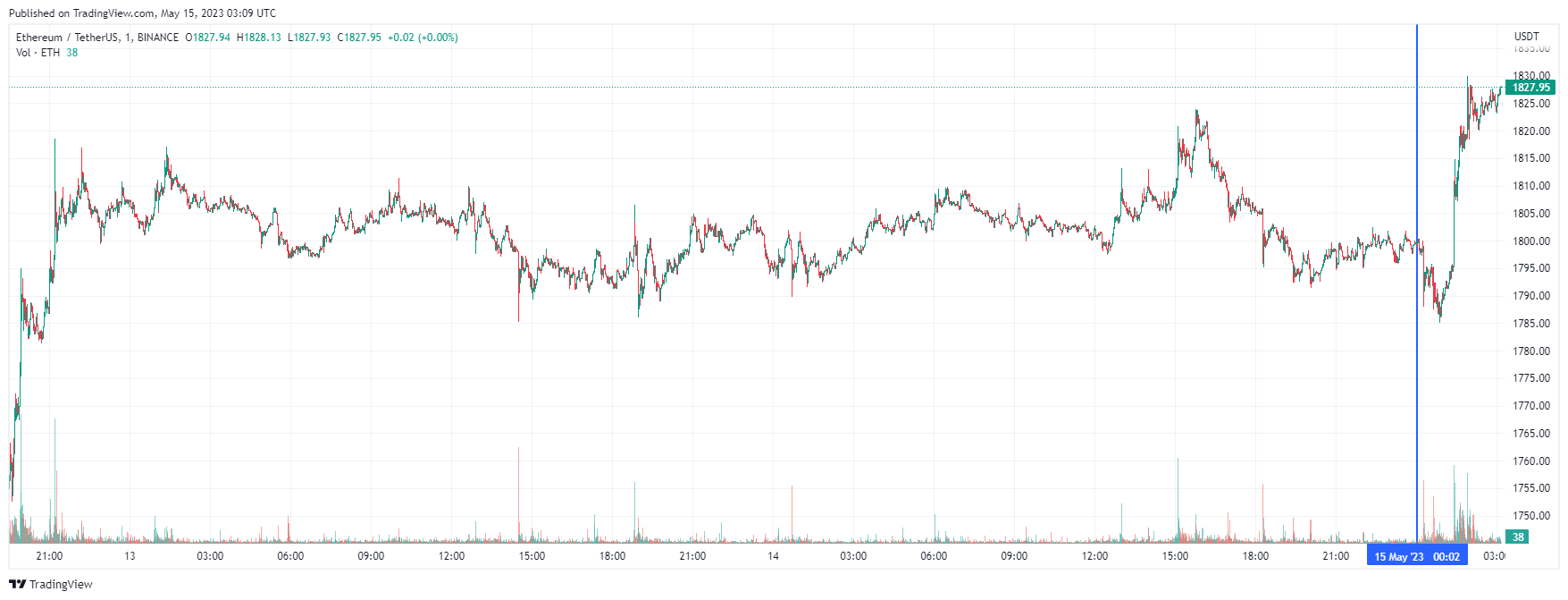 Вторая по капитализации криптовалюта Ethereum также начала день с роста. По состоянию на момент написания обзора, монета торгуется по $1827 (1 токен в рублях — ₽142,173).