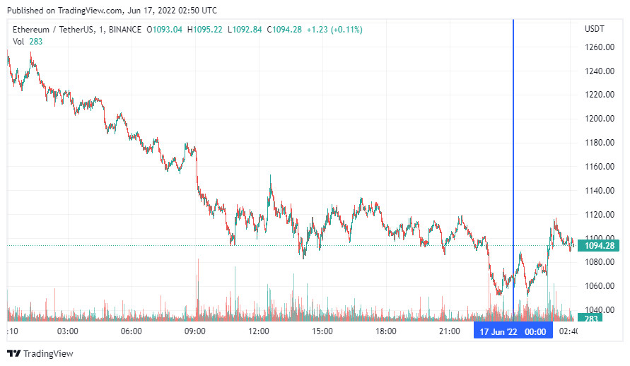 Вторая по капитализации криптовалюта Ethereum также начала день с небольшого роста. По состоянию на момент написания обзора, монета торгуется по $1094.