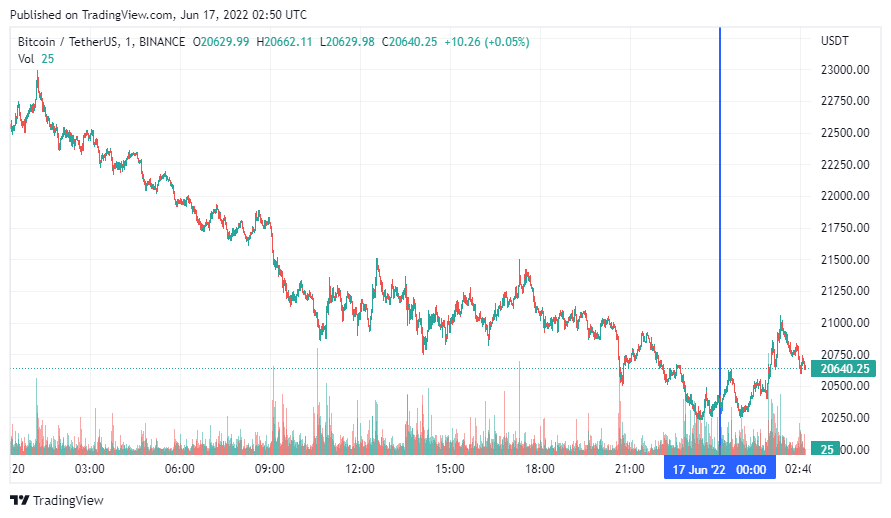 Биткоин (BTC), по данным ресурса CoinMarketCap, начал пятницу с небольшого роста. По состоянию на 05:51 (МСК), монета торгуется по $20 640. Минимум стоимости криптовалюты за 24 часа зафиксирован на уровне $20 265, максимум – на высоте $22 484.