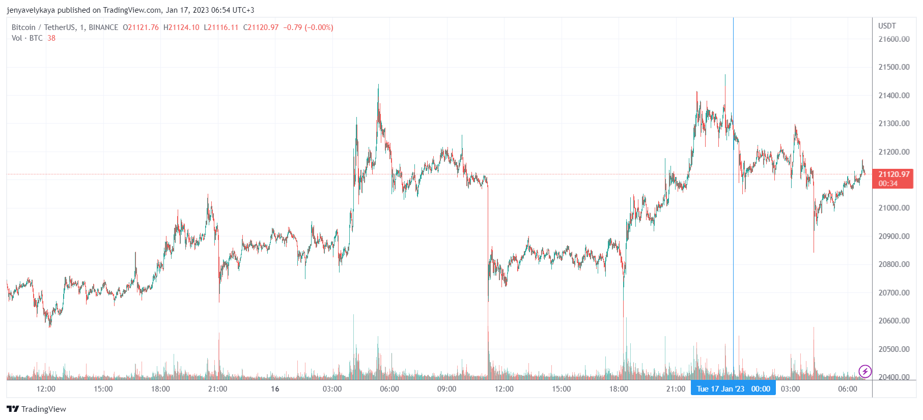 Биткоин (BTC), по данным ресурса CoinMarketCap, начал вторник с небольшой коррекции. По состоянию на 06:55 (МСК), криптовалюта торгуется по $21 120 (1 токен в рублях – ₽1,451,393). Минимум биткоина за 24 часа – $20 715, максимум – $21 360.