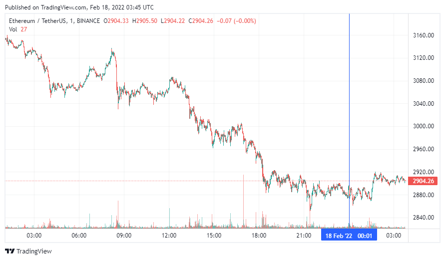 Вторая по капитализации криптовалюта Ethereum также начала пятницу с бокового движения. По состоянию на момент написания новости монета торгуется по $2904.