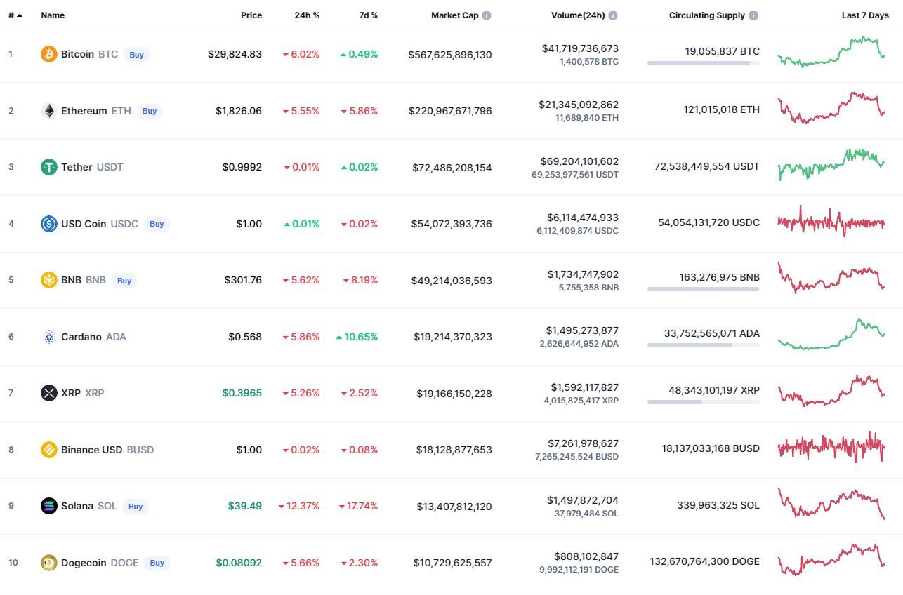 В топ-10 самых капитализированных криптовалют наибольшие потери за 24 часа (-12,37%) и неделю (-17,74%) зафиксированы у Solana. В рамках суток все монеты из первой десятки теряли в цене. В течение недели лучший результат зафиксирован у Cardano (+10,65%).