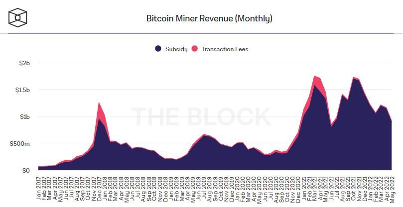 - В мае 2022 года доход майнеров биткоина упал более чем на 20%. На это указывают аналитические данные The Block.