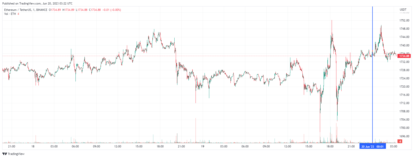 Вторая по капитализации криптовалюта Ethereum также начала день с роста. По состоянию на момент написания обзора, монета торгуется по $1734 (1 токен в рублях — ₽145,760).