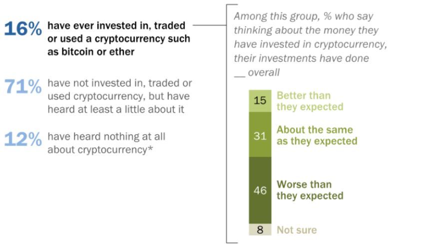 - Почти 50% взрослых американцев – участников криптосообщества – недовольны результатами инвестирования в криптовалюту. К такому выводу пришли аналитики Pew Research Centre в своем новом исследовании.