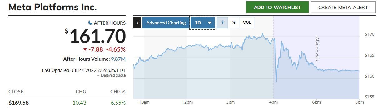 Прибыль Meta за квартал составила $28,82 млрд, а прибыль на акцию остановилась на уровне $2,46 доллара. Результаты оказались ниже ожиданий участников рынка. На фоне выхода отчета, акции Meta продемонстрировали отрицательную динамику.
