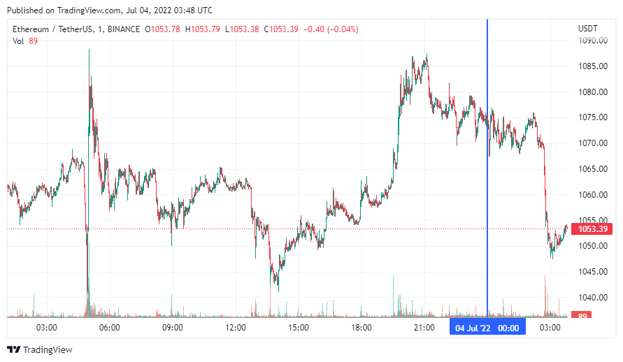 SponsoredВторая по капитализации криптовалюта Ethereum также начала день с падения. По состоянию на момент написания новости, монета торгуется по $1053.