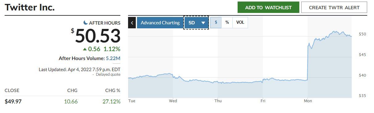 - Основатель компании-производителя электрокаров Tesla Илон Маск приобрел 9.2% социальной сети Twitter. Информация об этом появилась в документах американской Комиссии по ценным бумагам и биржам (SEC). На фоне новости акции Twitter продемонстрировали рост на 25%.