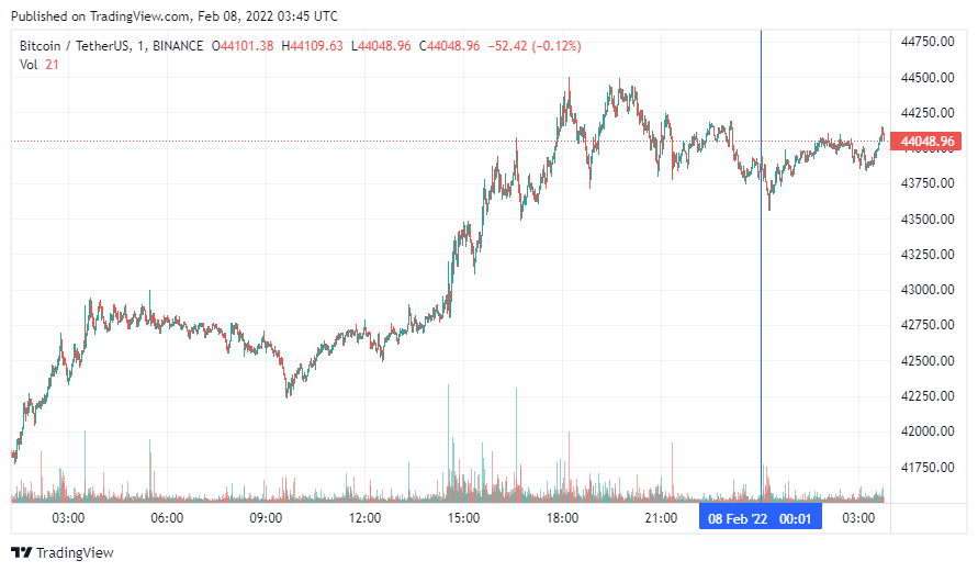 Биткоин (BTC) начал вторник с бокового движения. По состоянию на 06:48 (МСК), криптовалюта торгуется по $44 048. Минимум стоимости монеты за 24 часа, по данным ресурса CoinMarketCap, зафиксирован на уровне $42 327, максимум – на высоте $44 401.