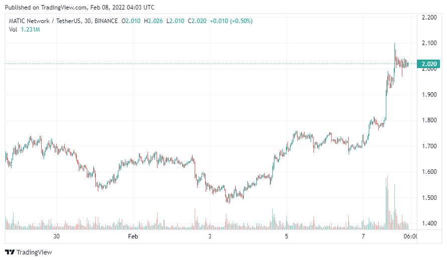 На фоне выхода новости криптовалюта Polygon (MATIC) продемонстрировал рост.