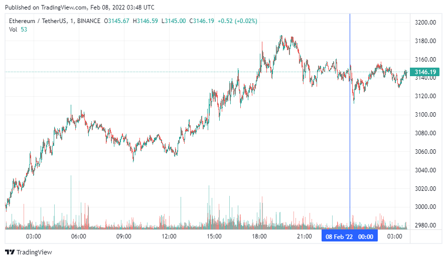 Вторая по капитализации криптовалюта Ethereum также начала день с бокового движения. По состоянию на момент написания новости монета торгуется по $3146.