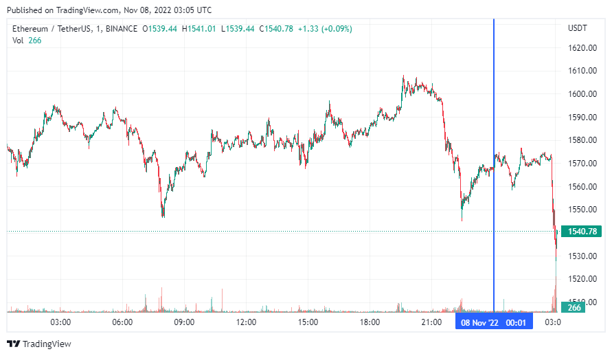 Вторая по капитализации криптовалюта Ethereum также начала день с небольшого роста, который перешел в коррекцию. По состоянию на момент написания обзора, монета торгуется по $1540 (1 токен в рублях – ₽94,180).