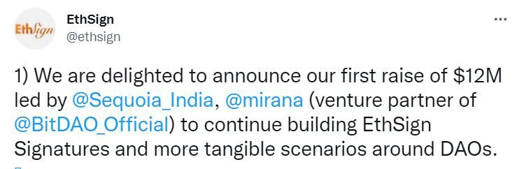 - Разработчик инфраструктуры для Web3 – EthSign привлек $12 млн в рамках раунда сбора финансирования. Информация об этом появилась в Twitter проекта.