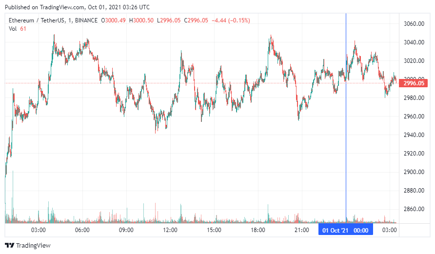 Вторая по капитализации криптовалюта – Ethereum – также начала пятницу с небольшого падения. По состоянию на момент написания новости, ETH торгуется по $2996.