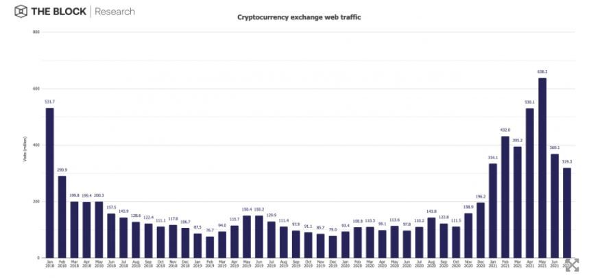 Sponsored- Объем веб-трафика криптобирж продолжил падать второй месяц подряд. В июле, в сравнении с результатами первого месяца лета, показатель снизился на 13.5%. Об этом пишет The Block.