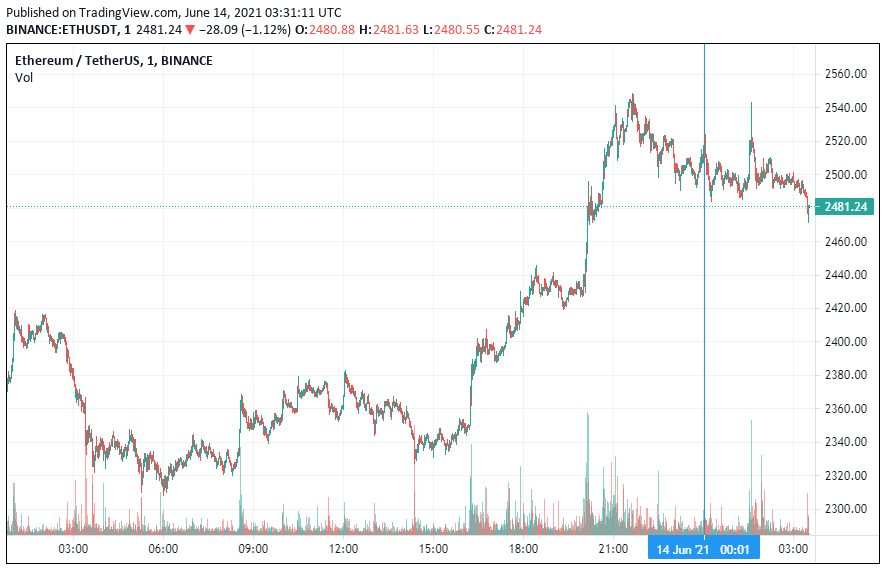 Вторая по капитализации криптовалюта – Ethereum – начала день с коррекции, которая последовала за волной роста, зафиксированной в конце воскресенья. По состоянию на момент написания новости монета торгуется по $2481.