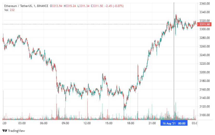 Вторая по капитализации криптовалюта – Ethereum – также начала понедельник с роста. По состоянию на момент написания новости, монета торгуется по $3311. Минимум стоимости Ethereum за 24 часа был зарегистрирован на уровне $3117.