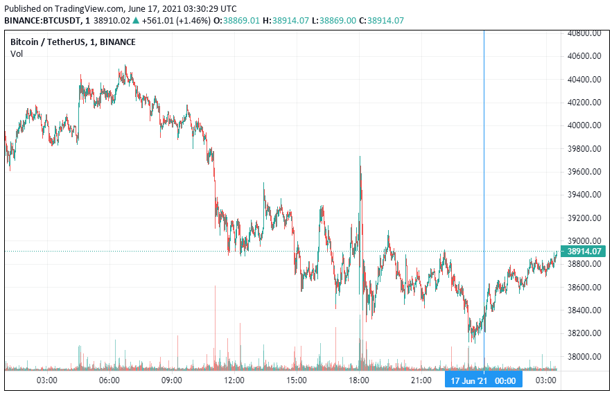 Биткоин (BTC) начал четверг с небольшого роста. По состоянию на 06:31 (МСК), криптовалюта торгуется по $38 914. Еще вчера монета находилась выше уровня $40 тыс.