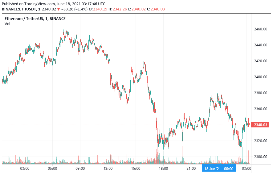 Вторая по капитализации криптовалюта – Ethereum – также начала пятницу с небольшого падения. По состоянию на момент написания новости, ETH торгуется по $2340.