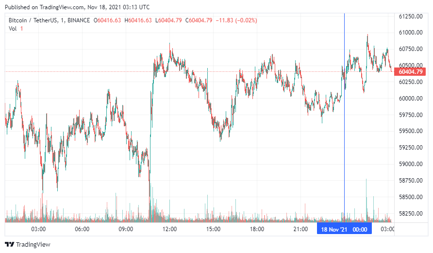 Биткоин (BTC) начал четверг с бокового движения. По состоянию на 06:14 (МСК), криптовалюта торгуется по $60 404. Минимум стоимости биткоина за 24 часа, по данным ресурса CoinMarketCap, зафиксирован на уровне $58 515, максимум – на высоте $66 306.