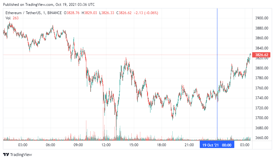 Вторая по капитализации криптовалюта – Ethereum – также начала день с роста. По состоянию на момент написания новости монета торгуется по $3826.