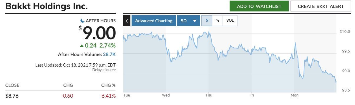 - Акции цифровой платформы Bakkt завершили первый торговый день на Нью-Йоркской фондовой бирже падением на 6%.