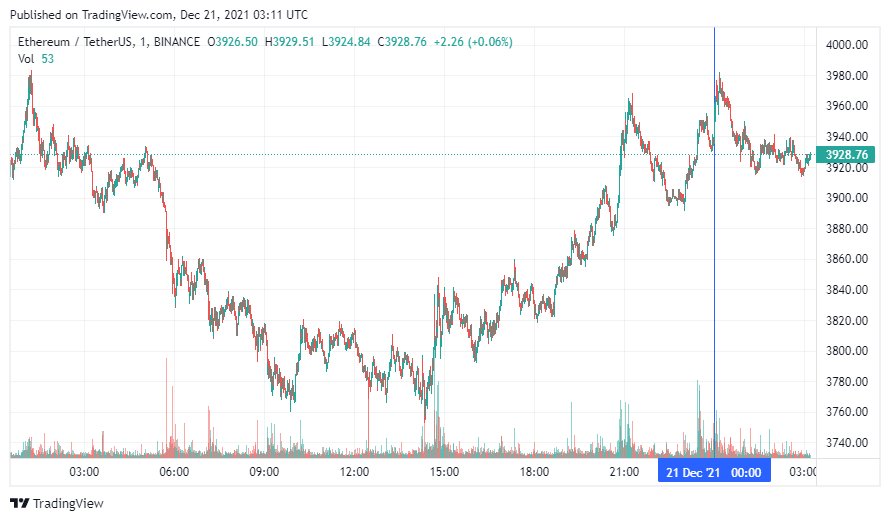 Вторая по капитализации криптовалюта Ethereum повторила движение биткоина. Монета также начала день с небольшого падения, которое перешло в боковик.