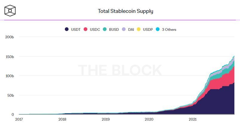- Общее предложение стейблкоинов на рынке в 2021 году выросло на 388%. На это указывают данные The Block.
