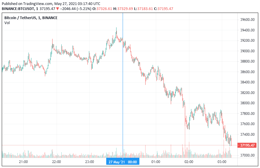 Биткоин (BTC) начал четверг с падения. По состоянию на 06:18 (МСК), криптовалюта торгуется по $37 195. Еще вчера утром курс биткоина находился близ $41 тыс.
