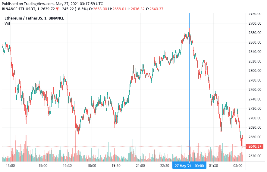 Вторая по капитализации криптовалюта – Ethereum – также начала утро с падения. По состоянию на момент написания новости, ETH торгуется по $2640.