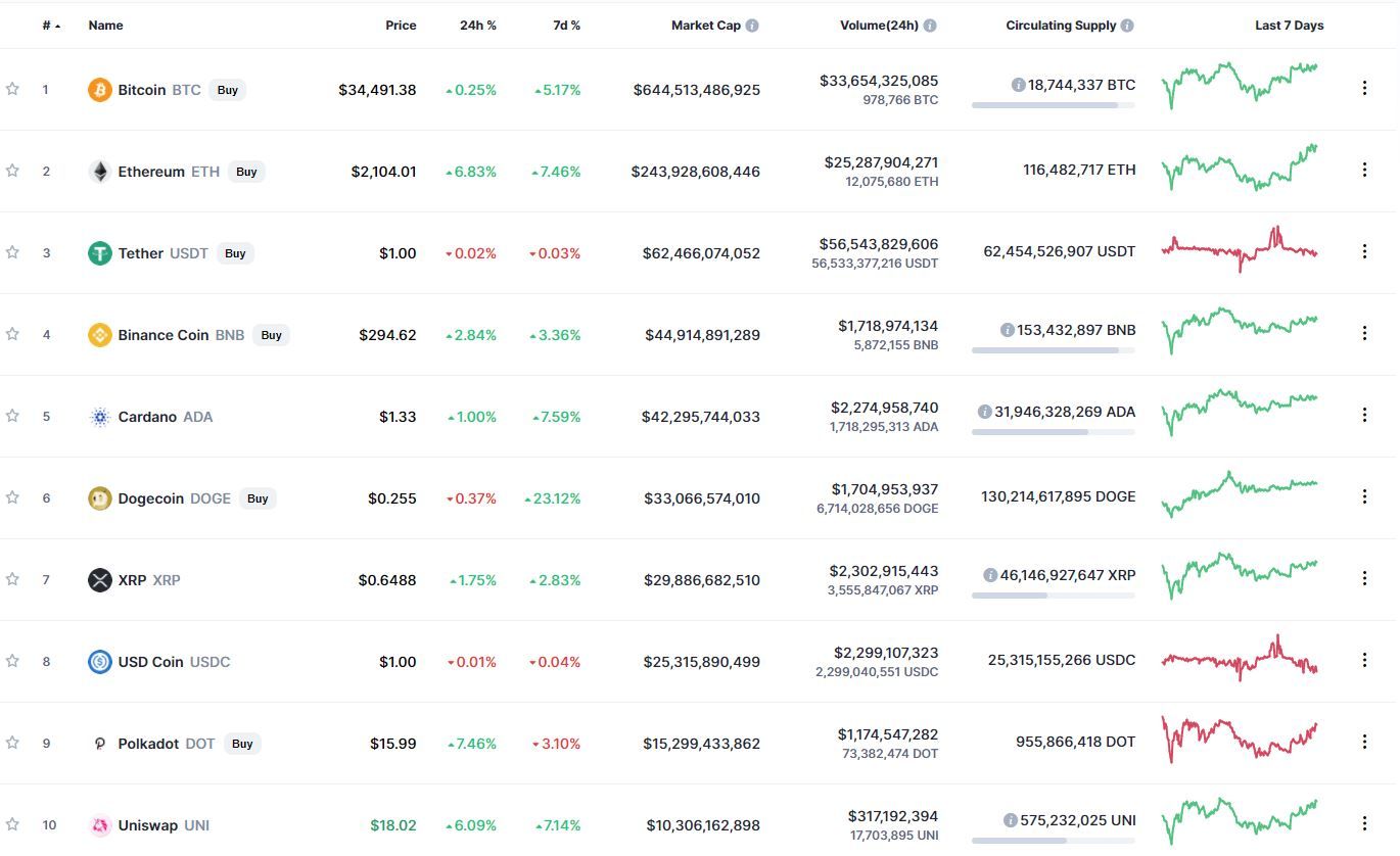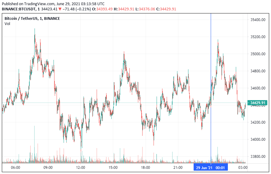 Биткоин (BTC) начал вторник с роста. По состоянию на 06:14 (МСК), криптовалюта торгуется по $34 429. Монета уже больше месяца движется в диапазоне $30-40 тыс. Основатель стартапа Civic Винни Лингем уверен в том, что такое поведение биткоина можно рассматривать, как фазу накопления энергии, благодаря которой ему удастся прорвать уровень $100 тыс. до конца года.