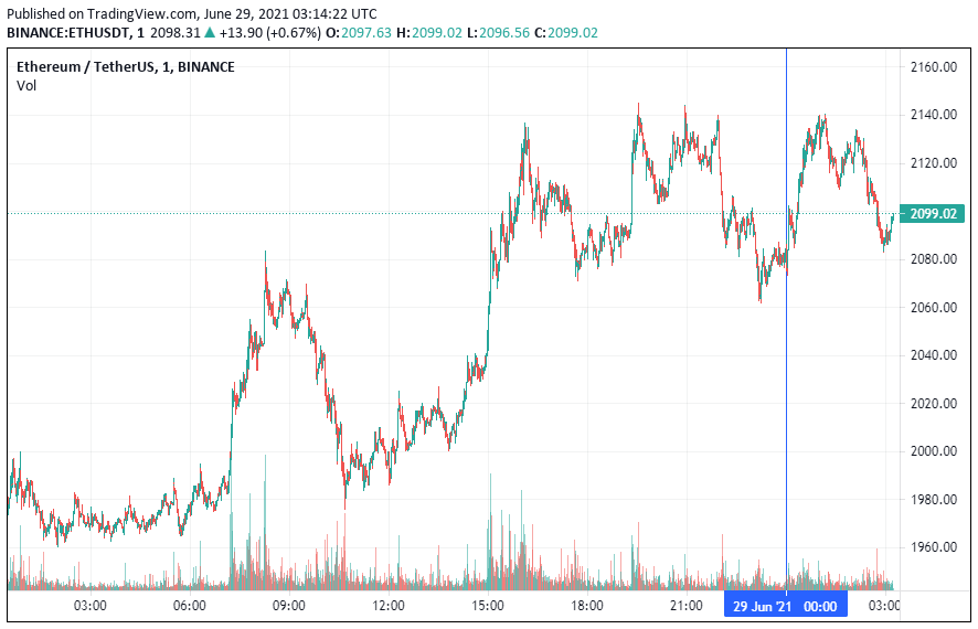 SponsoredВторая по капитализации криптовалюта – Ethereum – также начала день с роста. По состоянию на момент написания новости, монета торгуется по $2099.
