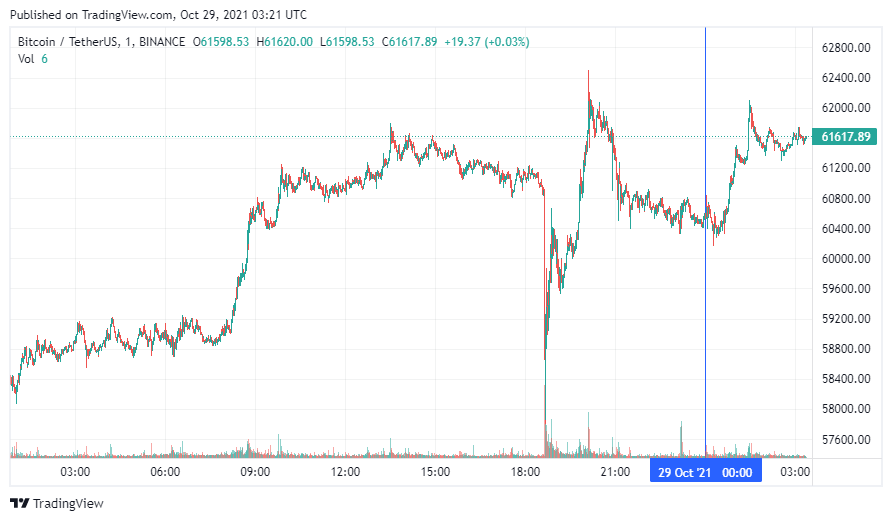 Биткоин (BTC) начал пятницу с роста. По состоянию на 06:22 (МСК), криптовалюта торгуется по $61 617. Минимум стоимости биткоина за 24 часа, по данным CoinMarketCap, зафиксирован на уровне $58 206, максимум – на высоте $62 128.